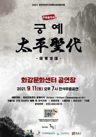 화강문화센터공연장 상주단체 철원예술단의 우수 레퍼토리 무용 음악극“궁예·태평성대 '太平聖代”가 오는 9월 11일 오후 7시 화강문화센터 공연장에서 선보인다.