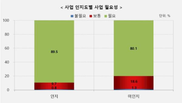 이번 결과에 따르면 국민의 24.8%가 문화재 돌봄사업을 인지하고 있으며, 82.4%는 문화재돌봄사업의 필요성에 대해 매우 긍정적인 것으로 나타났다. 또한, 문화재 돌봄사업을 인지하는 국민이 이 사업의 필요성에 대해 공감하는 수준 역시 높은 것(5점 척도에서 약 4.06점)으로 드러났다.