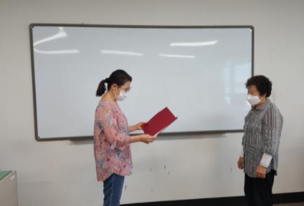장려상을 수상한 신선옥 어르신은 “늦은 나이에 용기를 내 공부를 시작해 이렇게 큰 상까지 받을 수 있어서 영광”이라며, “항상 배움의 열정을 불태워 주시는 선생님께 정말 감사한 마음뿐이다”라고 수상소감을 밝혔다.