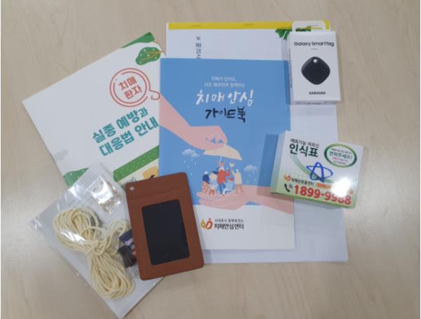 실종예방을 위한 꾸러미는 배회가능 어르신 인식표, 교통카드 지갑, 소형 위치추적기(스마트태그), 실종예방과 대응법 안내 책자 등으로 구성되어 있다.