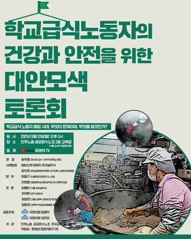더불어민주당 윤영덕 국회의원(광주 동남갑)과 정의당 강은미 국회의원(비례대표)은 9월 13일 오후 3시 민주노총 공공운수노조 2층 교육장에서 ‘학교급식노동자의 건강과 안전을 위한 대안 모색 토론회’를 개최한다고 밝혔다.