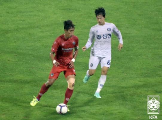 강릉은 전반 내내 볼 점유율을 높이며 경기를 주도하는 모습을 보였다. 특히 중원에서 볼 소유권을 가져가며 득점을 노려보고자 했다. 하지만 공격 진영에서의 잦은 실수로 인해 분위기를 가져갔음에도 위협적인 상황까지는 만들지 못했다.