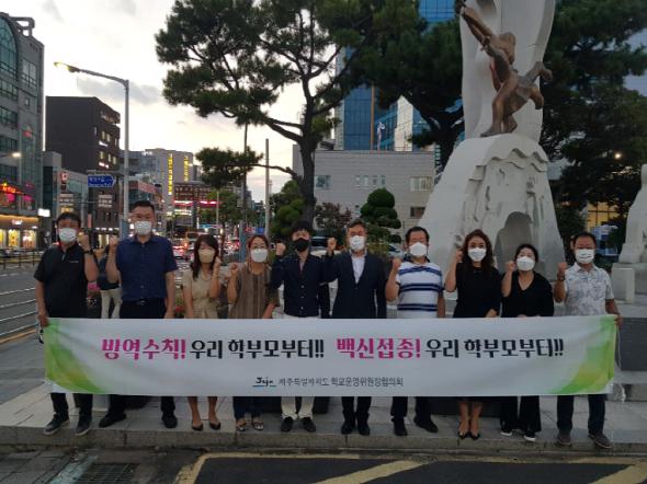 제주도 내 각급학교 학교운영위원장이 참석한 코로나19 캠페인에서 고덕훈 회장은“학교발 확진자의 증가를 예방하고 백신접종 독려를 통해 부모로부터 아이들에게 감염되는 사례가 없도록 우리 학부모부터 방역수칙을 지키고 백신접종에 앞장서자”라고 당부하였다.