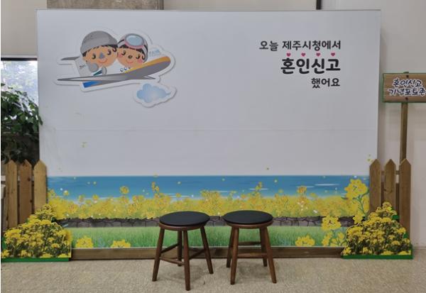 제주시는 혼인신고를 마친 부부들이 의미 있고 행복한 순간을 추억하는 혼인신고 기념 포토존을 새단장 했다고 밝혔다.