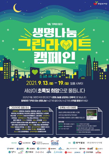 생명나눔 주간에 초록빛으로 점등된 랜드마크를 사진이나 영상으로 찍어서 SNS에 필수 해시태그와 함께 올리면 80명을 선정해 선물을 제공하는 이벤트도 마련돼 있다.
