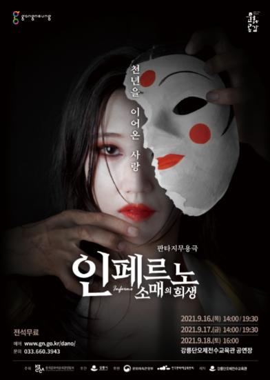 강릉단오제전수교육관은 제작공연 판타지무용극“인페르노 소매의 희생”공연을 16일부터 18일까지 강릉단오제전수교육관 공연장에서 펼친다고 밝혔다.