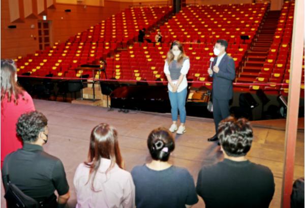 이날 방문은 지난 7월부터 단체 연습을 시작으로 8~9월 집중연습과 리허설 등 마지막 연습을 소화하고 있는 출연진들의 일정에 맞춰 격려를 하기 위해 이뤄졌다.