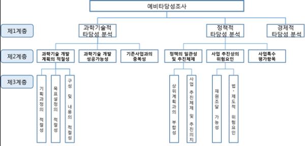 그리고, ‘과학기술적 타당성’의 하위에 사업추진의 필요성을 평가하기 위한 조사항목인 ‘문제/이슈 도출의 적절성’을 신설해, 연구개발 예타 조사체계를 사업기획 및 조사의 논리흐름에 맞게 조정했다.