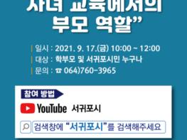 서귀포시는 자기주도학습지원센터에서 학부모와 서귀포시민을 대상으로 「2021 명사 초청 부모특강」을 운영한다.