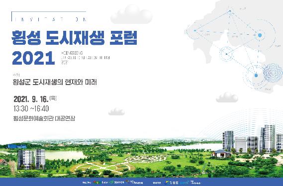 횡성군과 강원연구원이 주최하는‘횡성 도시재생 포럼 2021 (Hoengseong Urban Regeneration Forum 2021)’이 오는 16일 오후 1시 30분, 횡성문화예술회관 대공연장에서 개최된다.