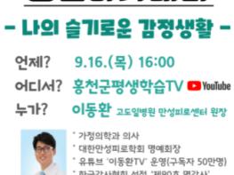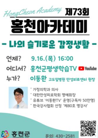 홍천군이 9월 16일 오후 4시 ‘제73회 홍천아카데미「나의 슬기로운 감정생활」’을 운영한다.