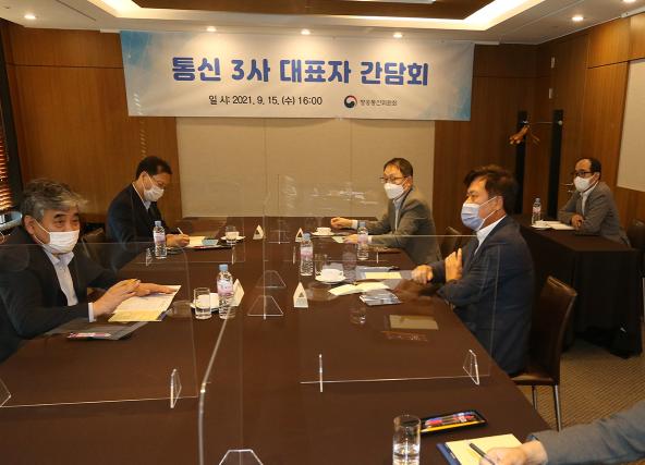방송통신위원회 한상혁 위원장은 9월 15일 16시 방송통신 시장의 주요 현안을 논의하고 업계의 의견을 청취하기 위해 통신 3사 대표와 간담회를 가졌다.