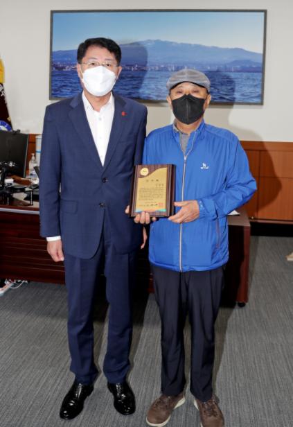 안동우 제주시장은 15일 우당도서관 건립의 토대인 우당 김용하 선생의 친필 서예 유품을 기증한 김문택 님(제주시 일도이동)에게 감사패를 전달했다고 밝혔다.