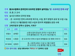 도교육청 구재승 교육과정과장은 “등교수업이 확대되면서 온라인과 오프라인, 각 수업의 장점을 살린 수업을 디자인하는 지혜가 필요하게 됐다”라며, “특히 온라인 수업 도구를 수업에 잘 사용하여 개별 맞춤형 수업이 확대되도록 지원하겠다”라고 말했다.