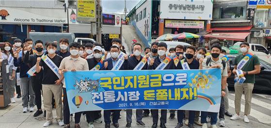 강원도 건설교통국 직원 50여명은 16일 오전 11시부터 강릉 중앙성남전통시장에서 추석맞이 장보기 행사를 개최하였다.