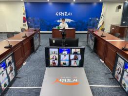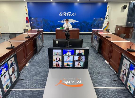 서귀포시는 지난 15일 11시 본관 셋마당(영상회의실)에서 환하게 웃는 공직사회 조성을 위한 계획의 일환으로써 재택근무자 8명과 함께「앱 생얼수다 DAY」를 운영하였다.