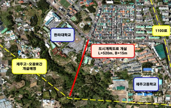 또한 2014년 노형2지구 개발사업 시 설치된 한라대학교 앞 교통신호기의 정상 운영을 통한 통학생들의 진출입 안전을 위해 도로개설이 시급한 실정이다.