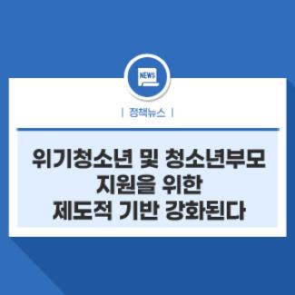 여성가족부는 위기청소년에 대한 통합지원 및 관리를 강화하고, 24세 이하 청소년부모를 지원하는 등의 내용을 담은「청소년복지 지원법」과 세부사항 등을 정한 같은 법 시행령 및 시행규칙이 9월 24일부터 시행된다고 밝혔다.