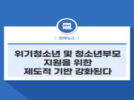 여성가족부는 지난 3월, 청소년복지 지원법 개정으로 지자체에 위기청소년 통합지원체계를 운영하는 전담기구 설치, 위기청소년통합지원정보시스템 구축․운영과 청소년부모에게 가족지원서비스, 복지지원, 교육지원을 할 수 있는 법적 근거를 마련한 바 있다.
