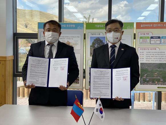 산림청은 9월 24일 몽골 울란바타르에서 몽골 환경관광부와 2022년도부터 추진할 양국 간 산림협력 사업 추진을 위해 ‘한-몽골 사막화·황사 방지 협력 양해각서’를 체결했다.