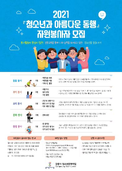 강릉시청소년문화의집은 2021년 하반기 독거노인 가정 봉사활동을 주제로 한 청소년 자원봉사동아리를 28일부터 10월 6일까지 모집한다.