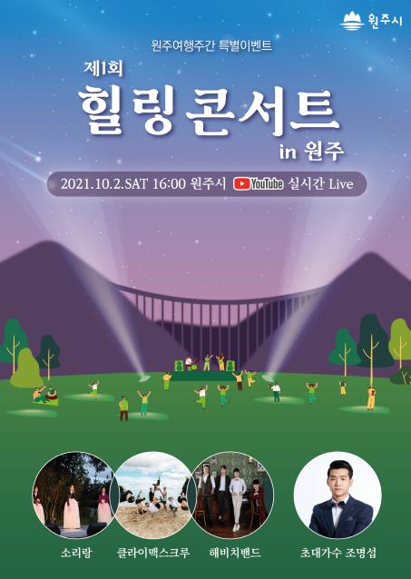 코로나19로 지친 시민들에게 힐링과 치유의 시간을 제공하고자 준비한 이번 행사는 코로나19 확산 방지를 위해 무관중 비대면 온라인 공연으로 진행되며, 원주시 유튜브 채널을 통해 생중계한다.