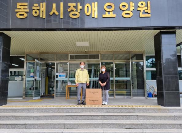 동해시의회는 27일, 동해시장애요양원과 장애인보호작업장을 방문해 코로나 예방을 위한 마스크 1,400매를 전달했다.