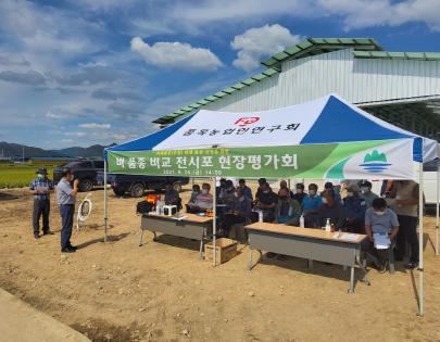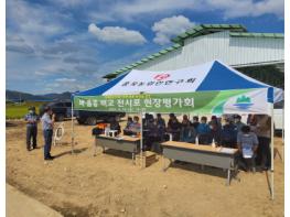원주시 농업기술센터는 지난 24일 외래품종 벼(추청) 대체를 위한 국내 육성 최고품질 벼 품종 비교 전시포 현장 평가회를 개최했다.