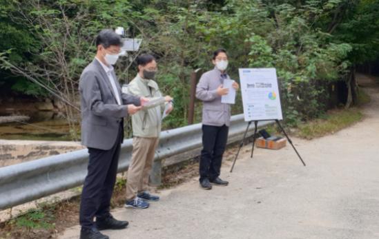 이날 스마트센서 모니터링 시스템 개발을 위해 도시생활권 산지인 관악수목원에 테스트 베드를 구축하고 강우량, 수위, 유속을 정확하게 수집·저장하여 실시간으로 자료를 전송하는 시스템을 시연하였다.