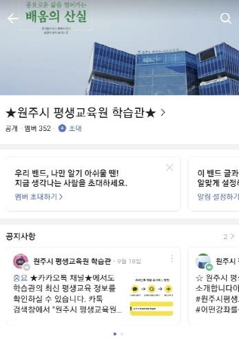 원주시 평생교육원 학습관은 시민들과 적극적인 소통을 위해 최근 카카오톡 채널과 네이버 밴드를 개설했다고 밝혔다.