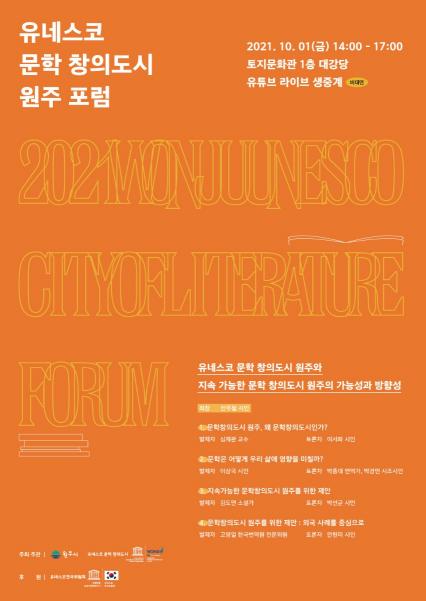 원주시는 10월 1일 오후 2시 토지문화관 대강당에서 유네스코 문학 창의도시 원주 포럼를 개최한다.