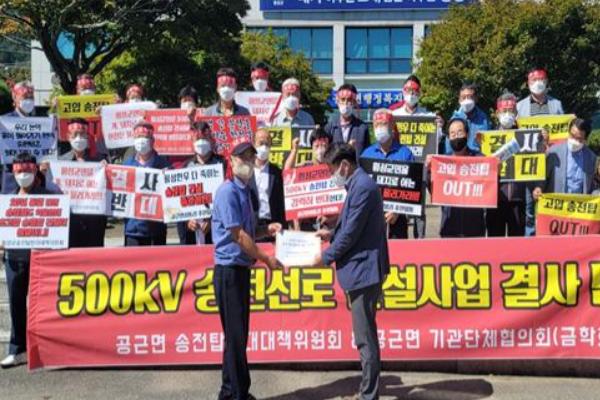 공근면 송전탑반대대책위원회 및 지역 기관단체장 모임인 금학회는 9월 30일, 한국전력공사 관계자에게 추가 후보경과대역 선정 즉각 철회와 송전선로 건설사업의 원할한 진행을 위한 주민과의 대화를 요구하는 500kV 송전선로 추가 후보경과지 철회 요구서를 전달하였다.
