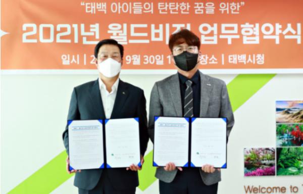 태백시와 월드비전 강원지역본부는 30일 태백시청 집무실에서‘월드비전, 강원 꿈꾸는 아이들 사업’업무 협약식을 체결했다.