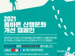 산림청은 코로나19 이후 엠지(MZ)세대 등 젊은 산행 인구가 증가함에 따라 안전하고 쾌적한 산행문화 정착을 위해 ‘2021 올바른 산행문화 개선 온라인 캠페인’을 추진한다.