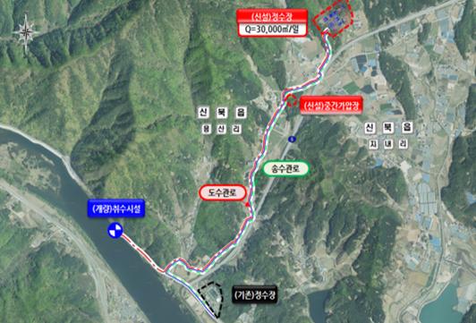 신축 용산정수장 위치는 신북 지내리 일대로 건설 면적은 5만8천㎡다.