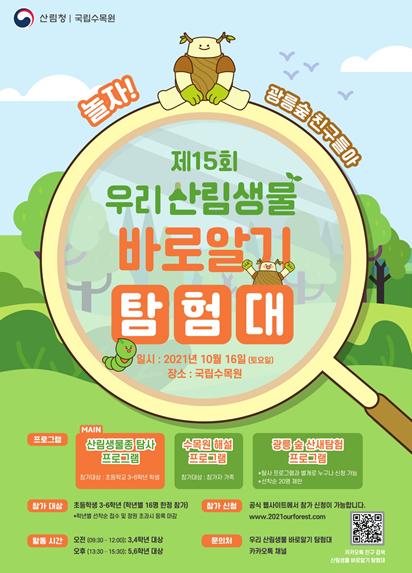 본 행사의 참가대상은 초등학교 3학년부터 6학년까지로, 관련 누리집에서 10월 8일까지 선착순으로 참가접수를 받는다. 참가한 학생들은 흥미진진한 광릉숲 탐험을 통해 우리 산림생물 지킴이상(산림청장상), 국립수목원장상, 어린이과학동아상 등에 도전할 수 있다.