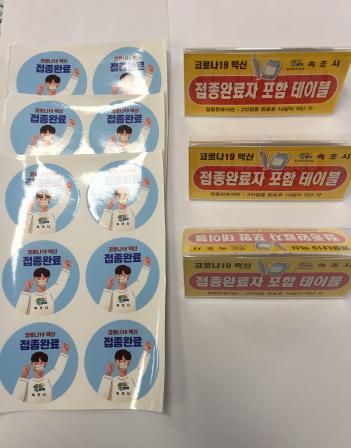 속초시가 제작하여 배부한 백신접종완료자 좌석 표시판과 스티커가 자영업자들과 시민들에게 좋은 반응을 보이고 있다.