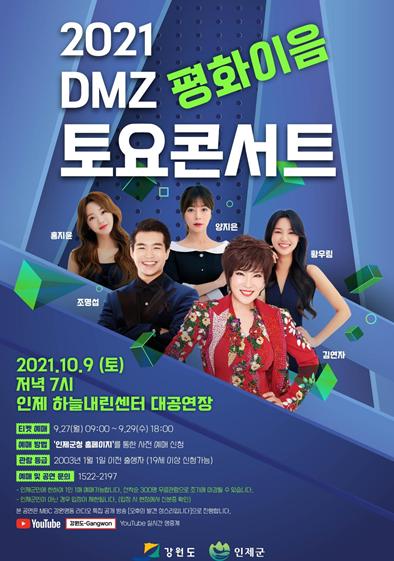 강원도는 10월 9일 인제군 하늘내린센터 대공연장에서 ‘2021 DMZ 평화이음 토요콘서트 인제’를 개최한다.