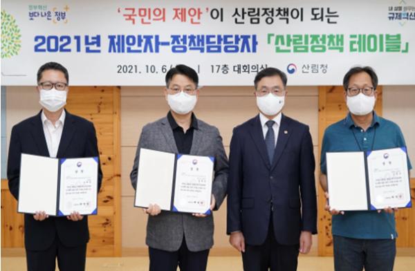 산림청은 6일 정부대전청사 대회의실에서 정부시책 및 행정제도 우수 제안자에 대한 시상식을 열고 제안자와 정책 담당자의 소통의 시간을 가졌다.