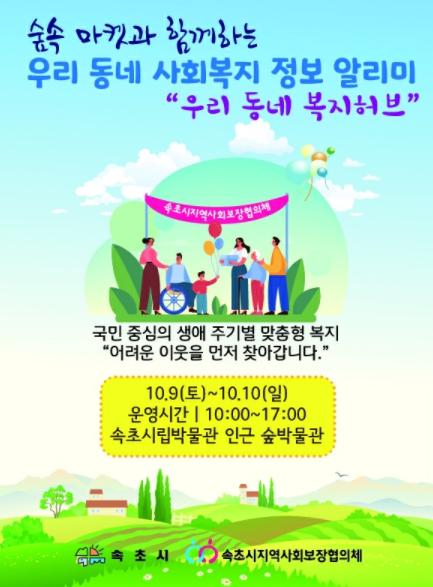 속초시지역사회보장협의체에서 참여하는 이번 행사는 시립박물관 주관의 숲 박물관 내 숲 속 마켓의 일환으로 참여하며‘2021 속초시 사회복지 정보 알리미 한마당’라는 주제로