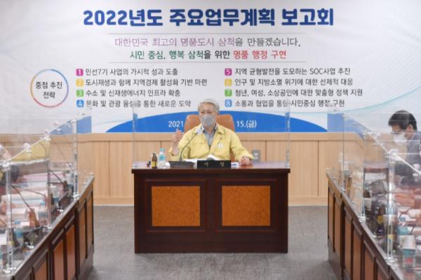 삼척시는 7일 시청 상황실에서 각 부서장 및 담당이 참석한 가운데 시장 주재로 2022년도 주요업무계획 보고회를 개최했다.