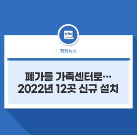여성가족부는 “제9차 생활SOC 정책협의회” 개최 결과, 2022년 생활SOC복합화사업 신규 사업에 가족센터 12개소가 포함됐다고 밝혔다.