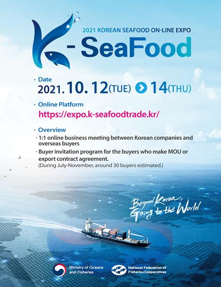 해양수산부는 코로나19로 어려움을 겪고 있는 국내 수산물 수출업체를 지원하기 위해 10월 12일부터 14일까지 3일간 온라인 수산박람회인 ‘2021 KOREAN SEAFOOD ON-LINE EXPO’를 개최한다고 밝혔다.