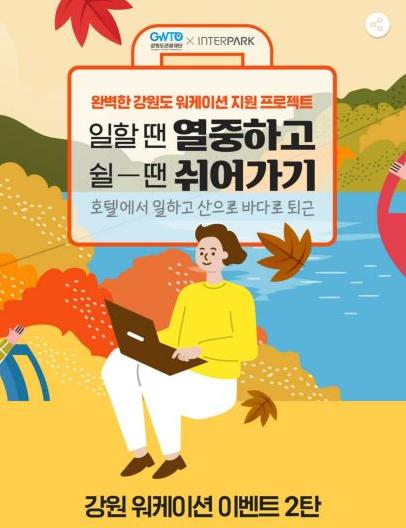 강원도관광재단은 인터파크 투어와 함께 지역관광 활성화 및 재택근무 트렌드에 맞춰 주중, 장기 관광객 유치를 위한 ‘강원도 워케이션 시즌2’를 12일 오픈한다고 밝혔다.
