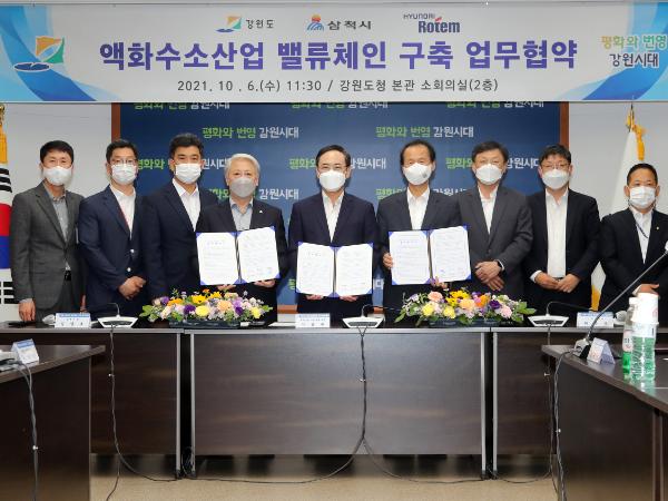 삼척시가 지난 6일 강원도, 현대로템과 체결한 ‘액화수소산업 밸류체인 구축 업무협약’을 기반으로 액화수소산업 육성에 역점을 두고 추진한다.