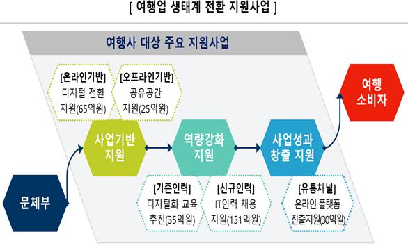 문체부는 지난 추경을 통해 확보한 예산으로 중소여행사 온라인 유통플랫폼 사업화와 관광업계 정보통신기술(ICT) 인력 신규 채용, 지역여행사 사무 공유공간 등을 적극 지원한다.