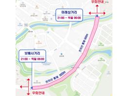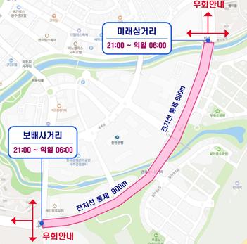 통제시간은 16일, 17일 각각 오후 9시부터 익일 새벽 6시까지이며, 통제구간은 보배사거리에서 미래삼거리까지 약 1km 구간이다.