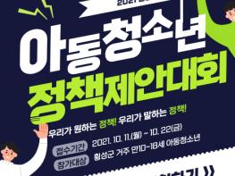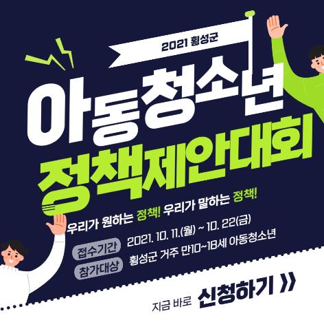 횡성군이 아동‧청소년의 꿈과 생각을 횡성군 정책으로 반영하기 위해 아동‧청소년 정책제안대회 참가자 신청 및 접수를 받는다.
