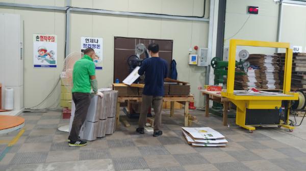 영월칼라박스에서는 장애인보호작업장으로 종사자 4명, 근로장애인 10명, 근로지원인 6명 등이 근무하고 지난해부터 사과, 옥수수박스 등 25종의 농산물박스를 주로 생산하고 있다.