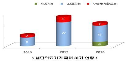인공지능 기반 의료기기를 필두로 3D 프린팅 및 수술용 로봇 등 첨단 의료기기가 꾸준하게 허가되고 있다.